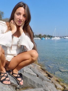 Длинноволосая деваха из Чехии снимает крупным планом мастурбацию небритой пилотки на свежем воздухе. Сначала пошлячка трахает мохнатку пальцами, а потом разгуливает по улице, задирает юбку и спускает лифчик, чтобы было видно ее интимные места.