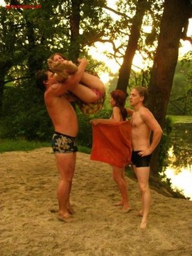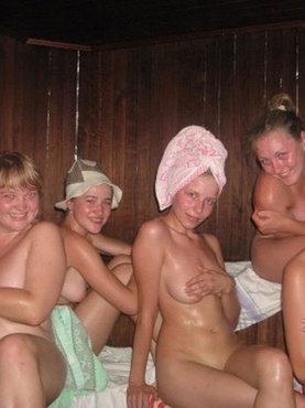 Несколько девушек отправились в сауну с партнерами, с которыми они немного попарились, а затем искупались в бассейне. Чтобы как-то развлечься, девки отправились в комнату с бильярдным столом. Одна из девушек с маленькими сиськами попросила подруг, чтобы они засняли ее в обнаженном виде прямо на столе.