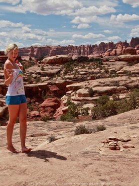 18летняя блондинка сняла голубые шорты на скале во время сафари